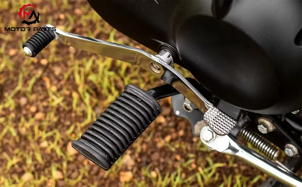 The working principle of the brake pedal is stemmed from the lever principle. The rider applies pressure through their feet, and the pedal transmits the force to the rear wheel braking mechanism (such as drum brakes or disc brakes). In terms of design, the stroke and force of the brake pedal are precisely tuned to guarantee that the rider can easily apply sufficient braking force and perceive the braking status of the rear wheels through feedback from the pedal, avoiding rear wheel lock caused by excessive braking force. In addition, some motorcycles also combine the brake pedal with the parking brake function. When the vehicle comes to a stop, the rider can achieve parking brake by stepping on the brake pedal to a specific position and locking it to prevent the vehicle from sliding.