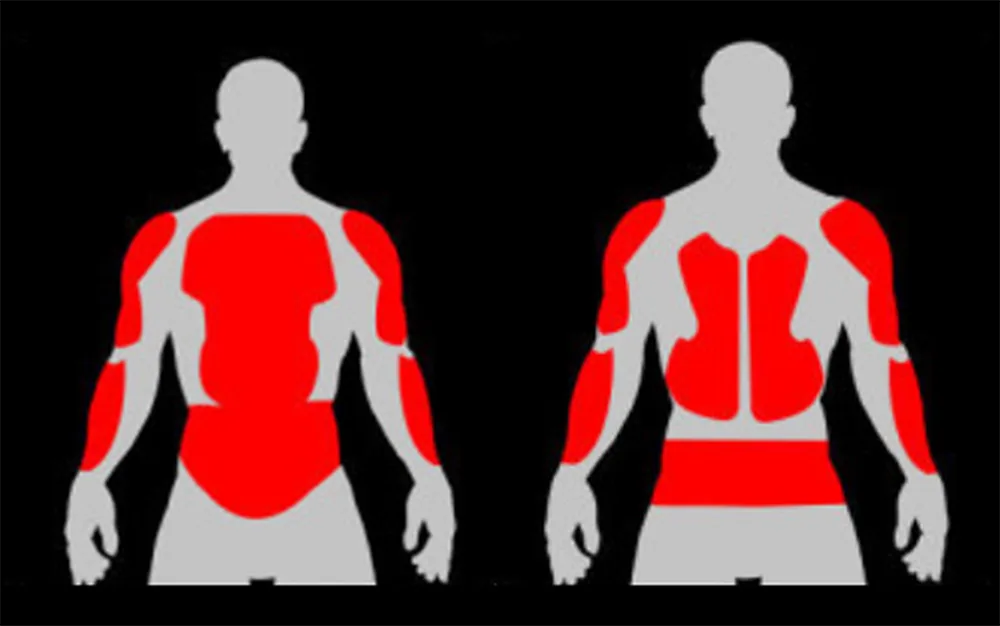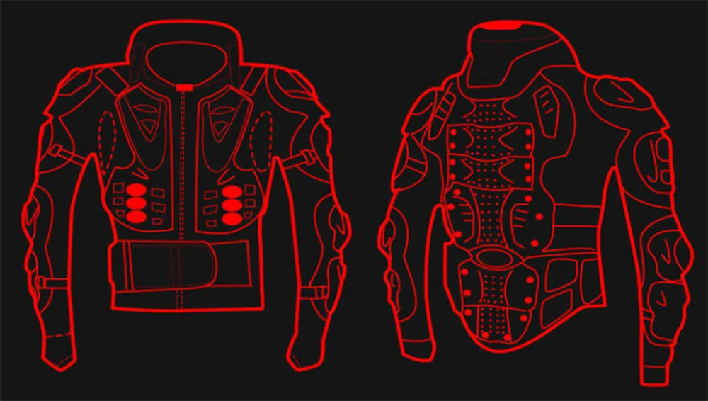 Vysokopevnostné kompozity: Pancier hornej časti tela na motocykle navrhnutý tak, aby odolal nárazom pri vysokej rýchlosti. Absorpcia energie voštinové: Špecializovaná vnútorná štruktúra navrhnutá tak, aby rozptyľovala kinetickú energiu po povrchu, čím sa minimalizovala lokalizovaná trauma. Krytie s úplným pokrytím: Strategická ochrana ramien, lakťov, hrudníka a chrbta.